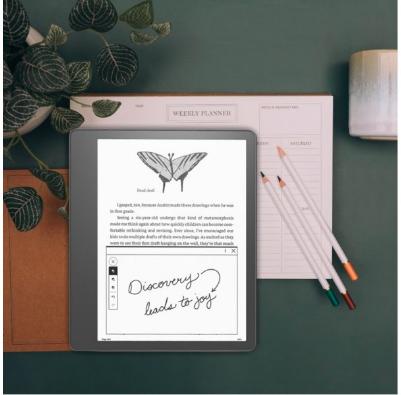 A Kindle Scribe fokozza a képek, illusztrációk és grafikonok szépségét egy nagy, vékony, nagy felbontású kijelzőn. A Kindle Stores világszerte páratlan tartalomkönyvtárat kínál több mint 13 millió címmel. A Kindle Unlimited előfizetéssel korlátlan hozzáférést kap több millió képregényhez, szépirodalomhoz, ismeretterjesztő könyvhöz és az újonnan hozzáadott legnépszerűbb ismeretterjesztő könyvekhez.