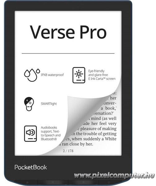 PocketBook Verse Pro Azure – Olvasás új szinten: stílus, teljesítmény és szabadság az e-könyvek világában! A PocketBook Verse Pro Azure a modern olvasás élményét hozza el egy elegáns, vízálló és intelligens e-könyv olvasóban . A 6 hüvelykes E Ink Carta HD kijelző 300 DPI felbontással lenyűgöző élességet és papírszerű olvasási élményt kínál, miközben a SMARTlight háttérvilágítás automatikusan alkalmazkodik a környezet fényviszonyaihoz. A Dual-Core processzor gyors lapozást és gördülékeny működést biztosít, a 16 GB tárhely pedig akár több ezer könyv tárolását is lehetővé teszi.